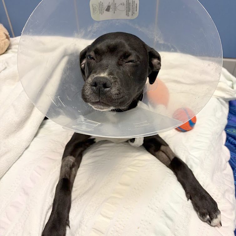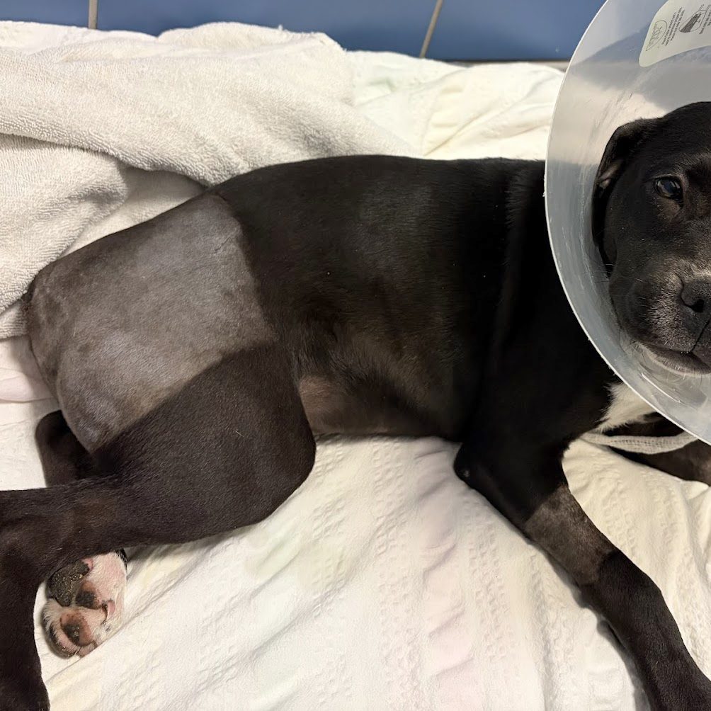 To give him the best chance to heal, the remaining portion of his injured tail had to be surgically amputated. He came through surgery like a champ and is now back with us—sleepy from his medication, comfortable, and finally able to rest. After everything he’s been through, this sweet boy is safe, deeply cared for, and on the road to recovery.